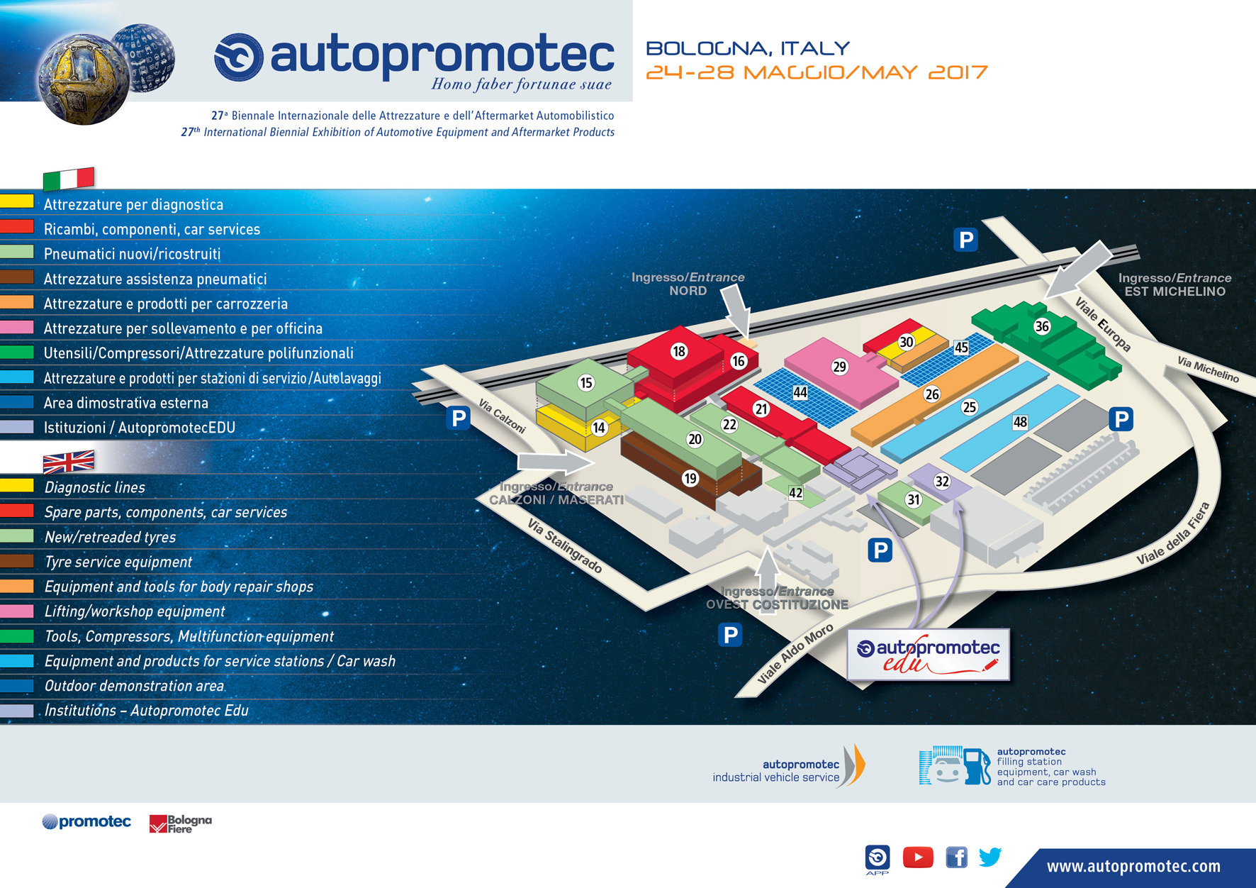 Dal punto di vista della superficie espositiva si è reso necessario raddoppiare l’area dedicata al settore dei pneumatici. Oltre ai padiglioni 20, 22 e 31, che già nell’edizione di due anni fa erano destinati alla gomma, in occasione di Autopromotec 2017 anche il padiglione 15 sarà interamente dedicato ai pneumatici, accogliendo anche i rivenditori di prodotti ricostruiti e di cerchi.