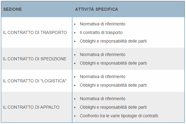 Il corso di evenT si propone una approfondita trattazione delle problematiche concernenti il trasferimento di cose. In tale ottica, saranno esaminate le norme di diritto concernenti al contratto di trasporto, di spedizione, e di appalto, con riferimento sia agli obblighi delle parti, che alle responsabilità del vettore per danni o per perdita ed avaria delle merci trasportate. Saranno altresì esaminati gli incoterms ed il contratto di logistica. Qui ci si può iscrivere.