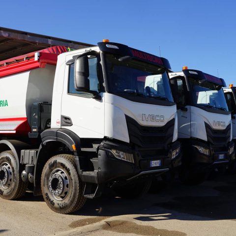 Multiscavi amplia la flotta con sei IVECO T-Way AD410T54, consegnati dalla concessionaria Di Pinto. I veicoli montano motore XC13 e cambio Hi-Tronix a 12 marce, con vasche ribaltabili Andreoli.