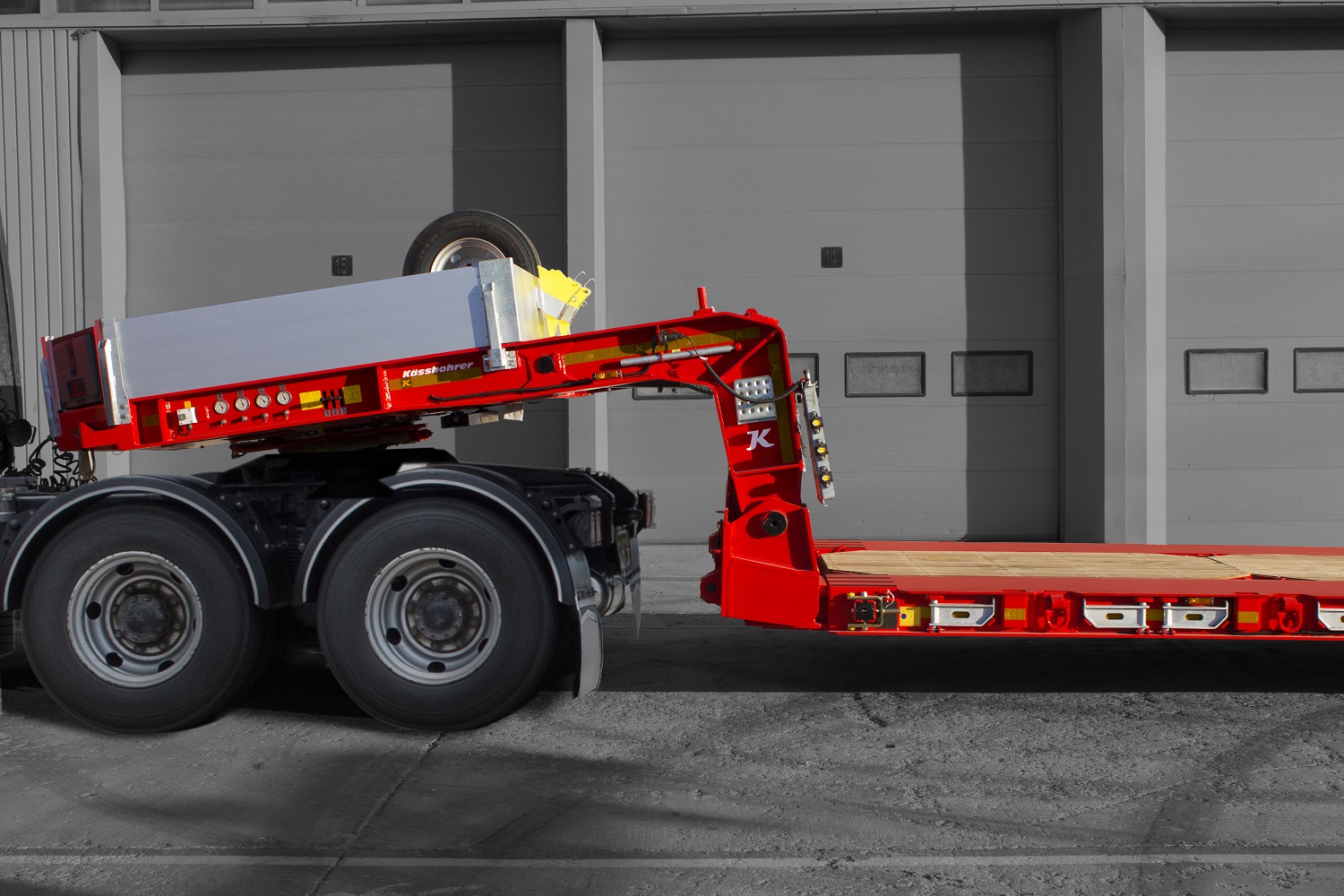 Il trasporto pesante è un settore che richiede accorgimenti specifici. La gamma del costruttore tedesco presenta diverse soluzioni. I pianali ribassati allungabili K.SLA superano i limiti dell’ingegneria. Questo per offrire prestazioni affidabili. Per ridurre i tempi morti sono dotati di estensione laterale a 3 livelli e 7 diversi tipi di rampe scorrevoli. In questo modo si alza la flessibilità di utilizzo in ambito ordinario. La sicurezza del carico è garantita da 32 anelli di ancoraggio. Anelli che hanno, ognuno, una capacità di 6 tonnellate. In questo modo la serie K.SLA offre le fondamentali opzioni per un trasporto rapido e sicuro del carico.