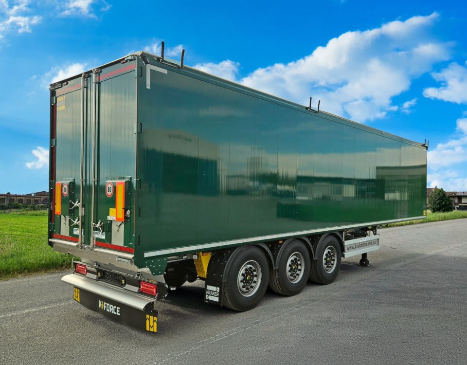 Allo stand sarà visibile anche il Kraker K-Force Agri HD, versione “Agri” del piano mobile con capacità complessiva di 74,5 m³, sviluppata per maggiore maneggevolezza in ambito agricolo. Il semirimorchio monta piano mobile Cargo Floor (21 profili in alluminio, spessore 10 mm), telo tetto ad avvolgimento automatico, primo asse sollevabile, terzo asse sterzante e barra paraincastro posteriore ribaltabile pneumaticamente.