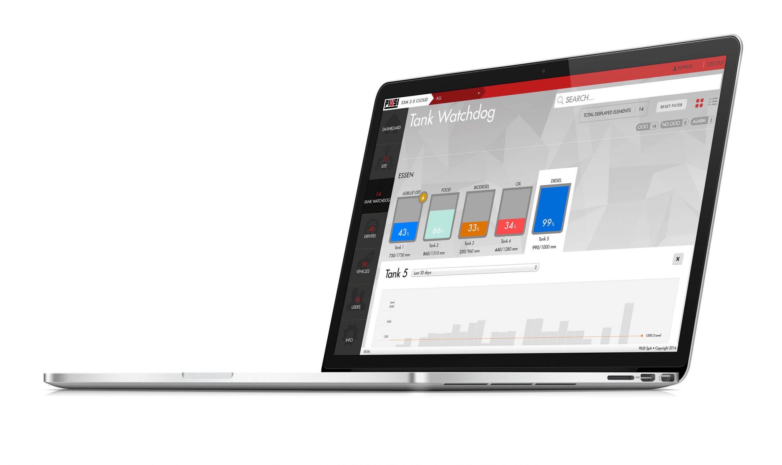 Grazie a semplici icone è possibile verificare a colpo d’occhio eventuali malfunzionamenti o stati di allarme, e intervenire prontamente anche limitando le erogazioni, potendo eventualmente disabilitare un distributore per il rifornimento, o un autista. Tramite la pratica dashboard, il gestore può accedere a report personalizzati in base a diversi tipi di parametri di ogni filtro (consumi, erogazioni e livelli); tutti i report sono poi esportabili (in formato .xls o .csv) per essere elaborati con qualsiasi programma di foglio di calcolo.