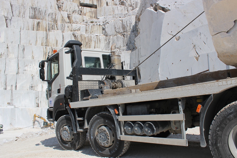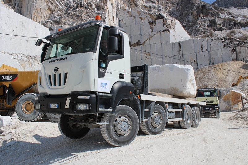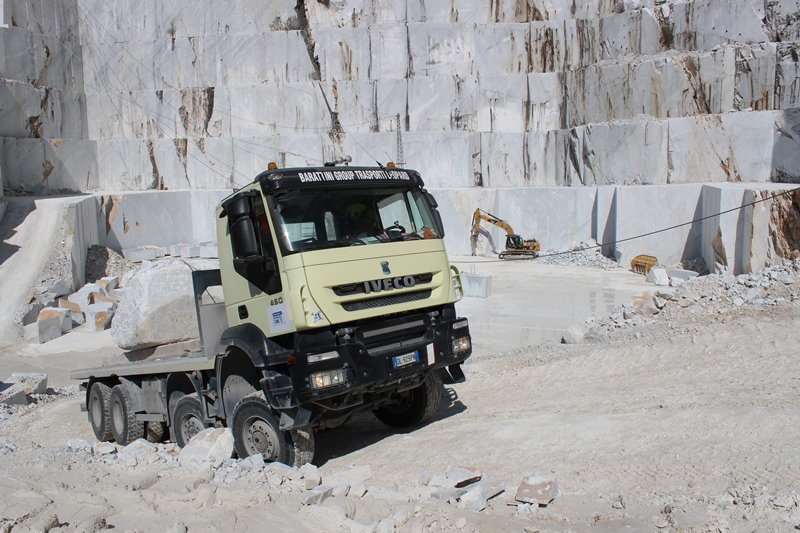 La virtù più importante dei pneumatici Athlet è rappresentata dalla buona resistenza ai danni garantita dalla nuova apposita mescola resistente ai tagli, aspetto cruciale evidenziato durante la dimostrazione nelle impervie cave di Carrara.