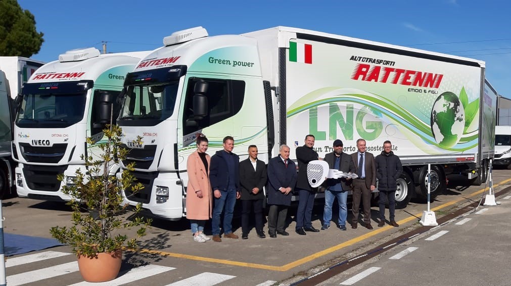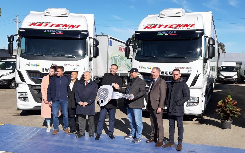 La cerimonia di consegna degli Stralis 460 NP ha avuto luogo presso la sede della concessionaria abruzzese locale, la Adriacar, nella sua sede di San Giovanni Teatino in provincia di Chieti, e ha visto la partecipazione di Emilio Rattenni, titolare dell’omonima azienda, accompagnato dai figli Marcello e Domenico, di Francesco Danelli e Antonio Mezzanotte, rispettivamente Titolare e Responsabile commerciale della Adriacar, e di Alessandro Oitana, IVECO Medium & Heavy Business Line Manager.