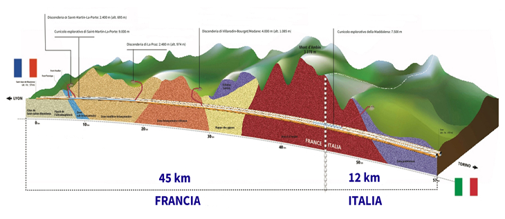 Ben l’89 per cento del tratto transfrontaliero è realizzato in galleria; il cuore dell’opera è rappresentato dal tunnel di base del Moncenisio. Le due canne, di 57,5 chilometri ciascuna, saranno collegate ogni 333 metri da by-pass di alcune decine di metri.