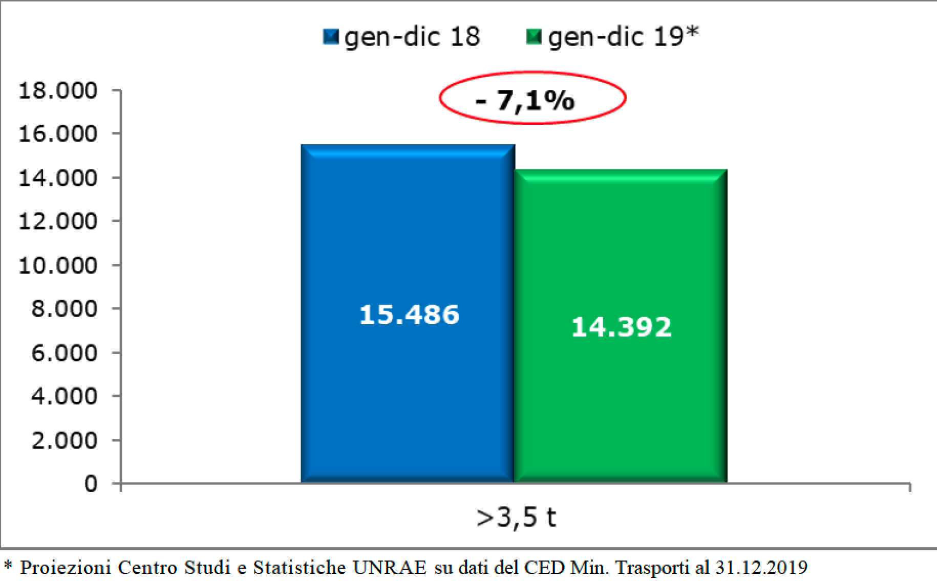 Il Centro Studi e Statistiche di UNRAE – sulla base dei dati di immatricolazione forniti dal Ministero delle Infrastrutture e dei Trasporti – ha elaborato una stima del mercato dei Rimorchi e Semirimorchi con massa totale a terra superiore a 3,5 t che denuncia per il 2019 una perdita del mercato pari a -7,1% rispetto al 2018 (14.392 unità immatricolate contro 15.486). Nel solo mese di dicembre si è registrata una diminuzione di -17% rispetto al dicembre 2018 (1.063 unità contro 1.281).