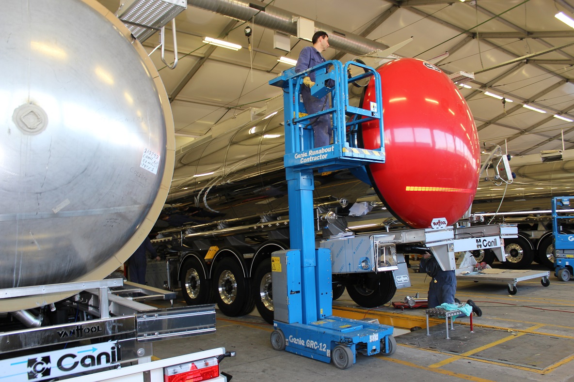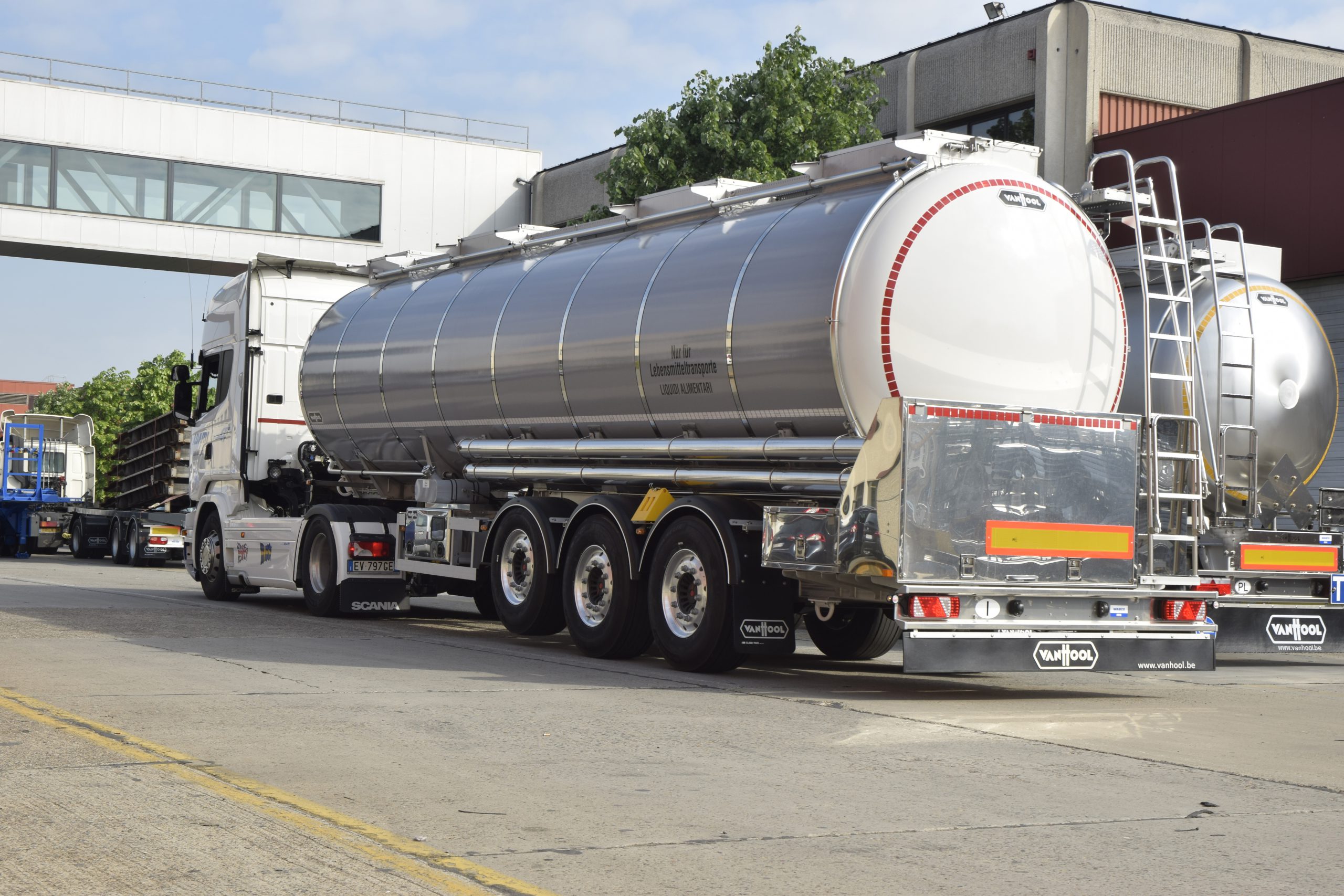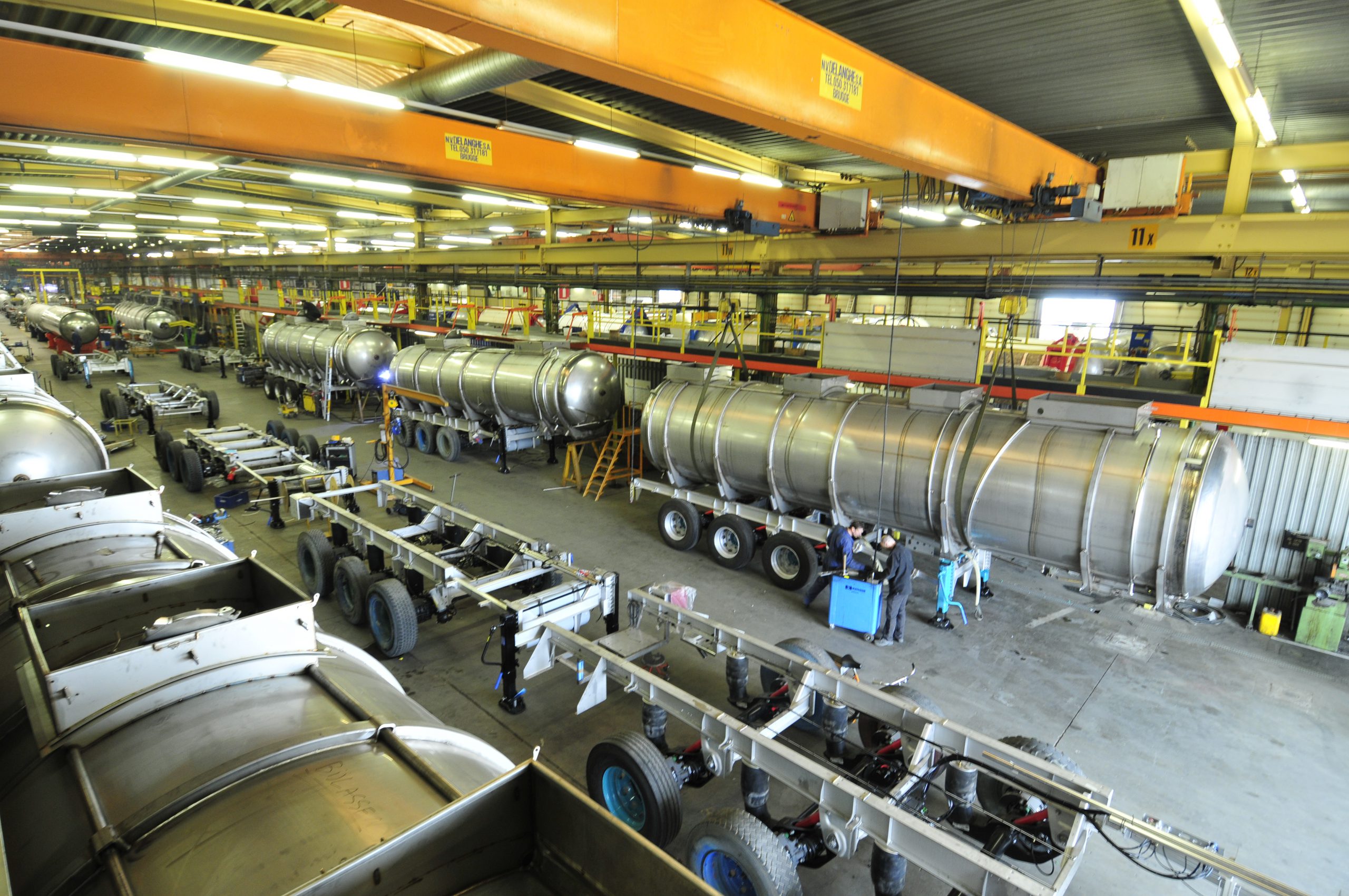 Nella passeggiata tra le linee, ha sorpreso l’imperterrita artigianalità applicata al processo produttivo in grado di sfornare annualmente oltre 3.000 unità tra singoli tankcontainer, chassis portacontainer e semirimorchi-cisterna. Un’altra chicca è costituita dal fatto che molte macchine impiegate nell’assemblaggio sono state appositamente sviluppate da un team di ingegneri interno. Durante la visita abbiamo potuto assistere alla rifinitura di diversi semirimorchi destinati a clienti italiani, tra cui alcuni già griffati Adami e Canil. In Italia Van Hool è rappresentata dalla società importatrice Real Trailer di Suzzara (Mantova).