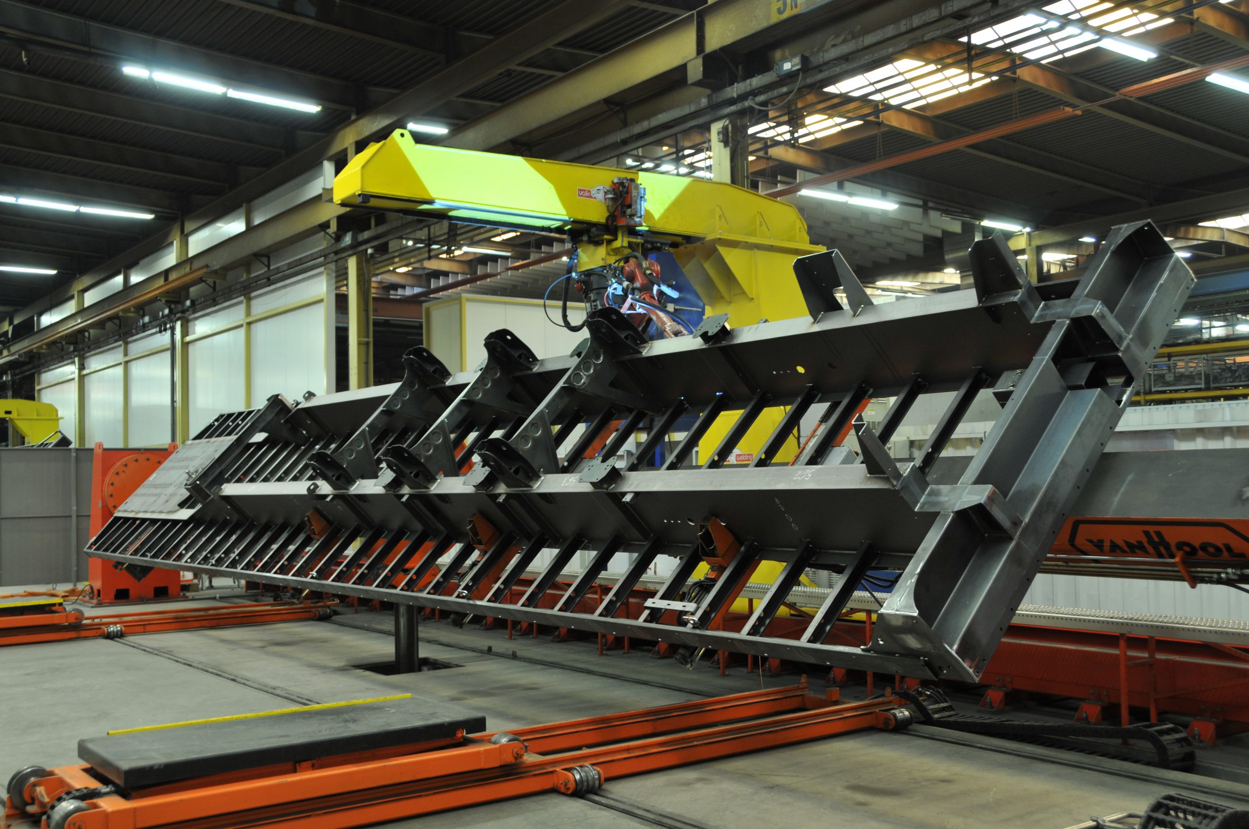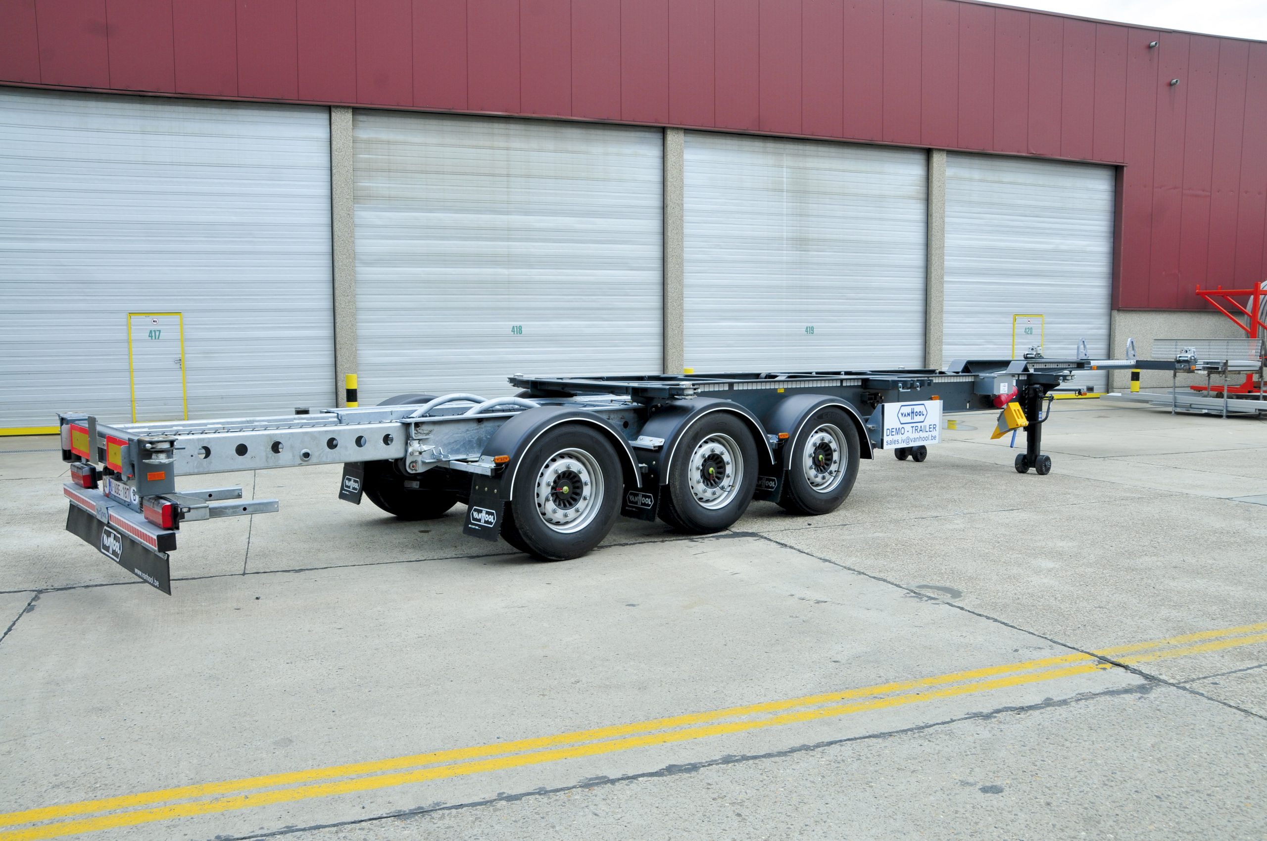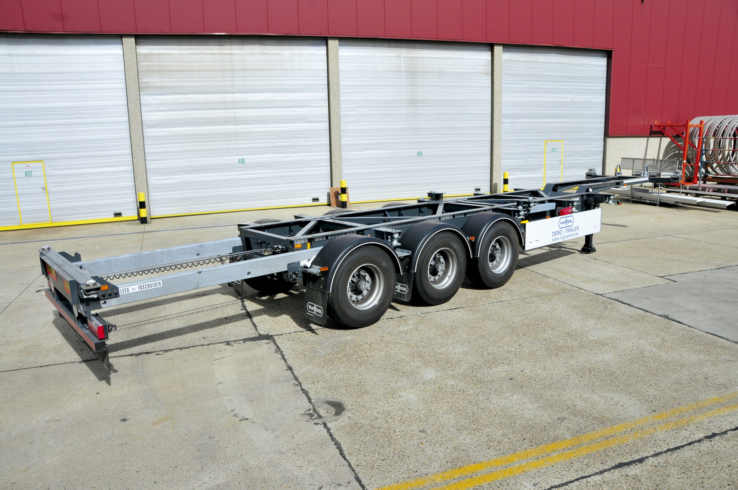 Nella passeggiata tra le linee, ha sorpreso l’imperterrita artigianalità applicata al processo produttivo in grado di sfornare annualmente oltre 3.000 unità tra singoli tankcontainer, chassis portacontainer e semirimorchi-cisterna. Un’altra chicca è costituita dal fatto che molte macchine impiegate nell’assemblaggio sono state appositamente sviluppate da un team di ingegneri interno. Durante la visita abbiamo potuto assistere alla rifinitura di diversi semirimorchi destinati a clienti italiani, tra cui alcuni già griffati Adami e Canil. In Italia Van Hool è rappresentata dalla società importatrice Real Trailer di Suzzara (Mantova).